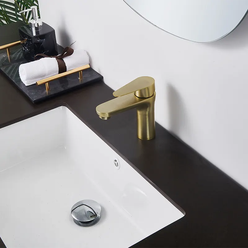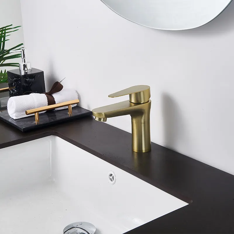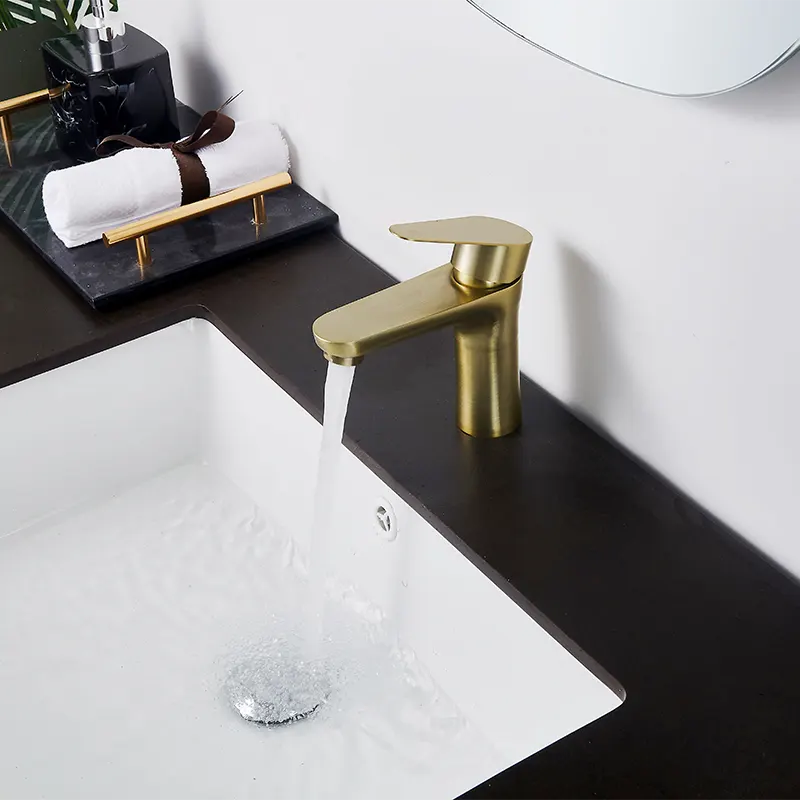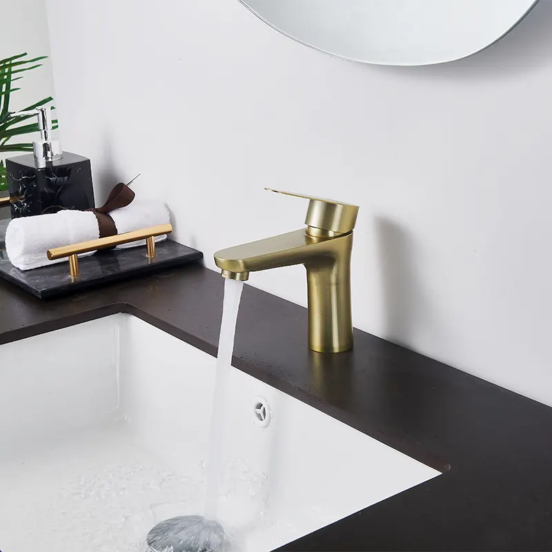 Vòi lưu vực vàng chải của chúng tôi áp dụng sự kết hợp giữa kết cấu chải và mờ để tạo cảm giác sang trọng trong khi tránh dư lượng dấu vân tay, phù hợp cho không gian phòng tắm kiểu sang trọng hoặc đơn giản hiện đại. Sự kết hợp của các yếu tố đen trắng, xám nhạt hoặc tự nhiên có thể tăng cường sự ấm áp của không gian, phù hợp cho không gian phòng tắm có kích thước nhỏ, mở rộng trực quan không gian.